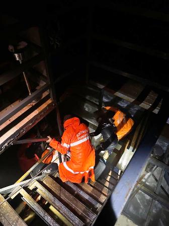 Kenan Y.'nin yardım çığlıklarını duyan diğer çalışanların haber vermesi üzerine olay yerine itfaiye, polis, sağlık ve AFAD ekipleri sevk edildi. Hareket etmekte zorlandığı öğrenilen aşçıbaşıyı bulunduğu yerden çıkarmak için seferber olan ekipler genç aşçıbaşının ağırlığı nedeniyle bir hayli zorlandı. Yaklaşık bir saatlik çalışmanın ardından bulunduğu yerden çıkartılan ve hayati tehlikesinin bulunmadığı öğrenilen Kenan Y. kendisi için çağrılan özel donanımlı ambulans ile hastaneye kaldırıldı. – İHA