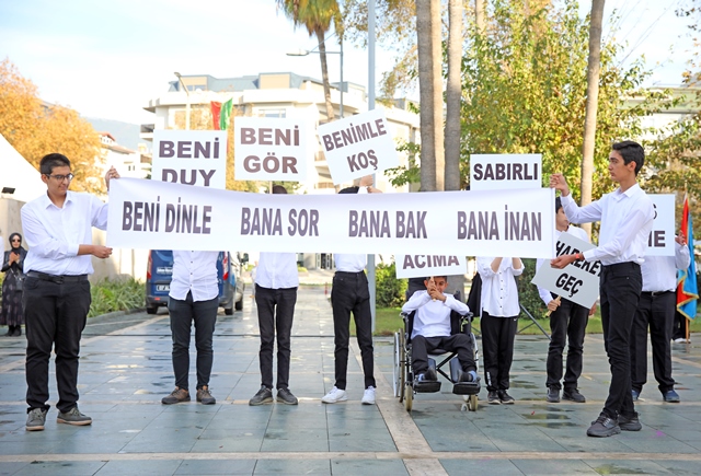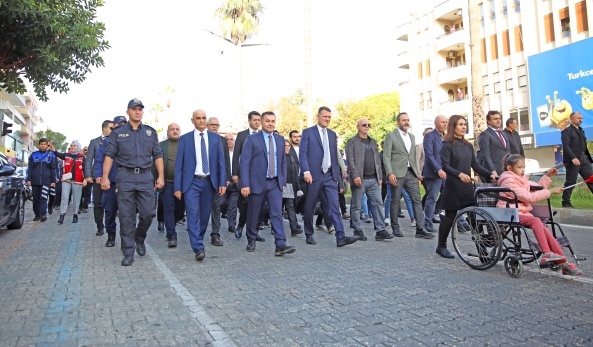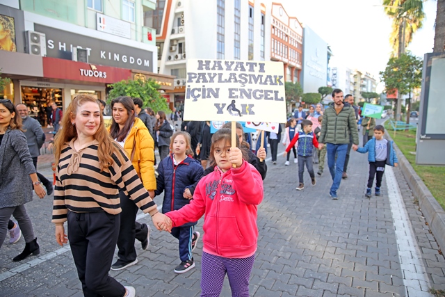 3 Aralık Dünya Engelliler Günü’nde, tüm dünyada olduğu gibi Alanya’da da çeşitli farkındalık etkinlikleri gerçekleştirildi. Kutlamalar kapsamında Alanya Belediyesi ve İlçe Milli Eğitim Müdürlüğü’nce, Alanya İlçe Milli Eğitim Müdürlüğü önünden başlayarak Hükümet Meydanı’ndaki Atatürk Anıtı’na kadar “Sevgi Yürüyüşü” gerçekleştirildi. Yürüyüşe Alanya Kaymakamı Fatih Ürkmezer, Alanya Belediye Başkanı Adem Murat Yücel, Alanya İlçe Milli Eğitim Müdürü Yusuf Yılmaz, protokol üyeleri ve engelli bireyler ile aileleri katıldı. Yürüyüş bando ekibinin performansı eşliğinde pankart ve dövizlerle büyük bir coşkuyla gerçekleştirildi.