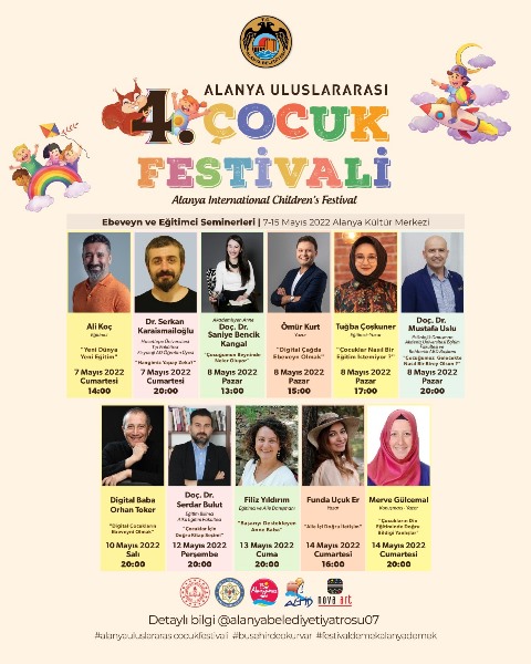 4. Alanya Uluslararası Çocuk Festivali ve Kitap Fuarı, 7 Mayıs Cumartesi günü Eğitimci Ali Koç’un ve Hacettepe Üniversitesi Tıp Fakültesi Öğretim Üyesi Dr. Serkan Karaismailoğlu’nun seminerleri ile başlayacak.