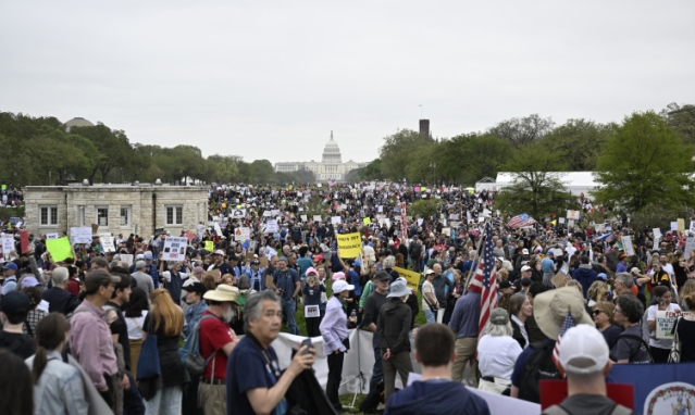 Trump’ın politikalarından memnun olmayan vatandaşlar ve aktivistler Washington Anıtı'nda toplandı.