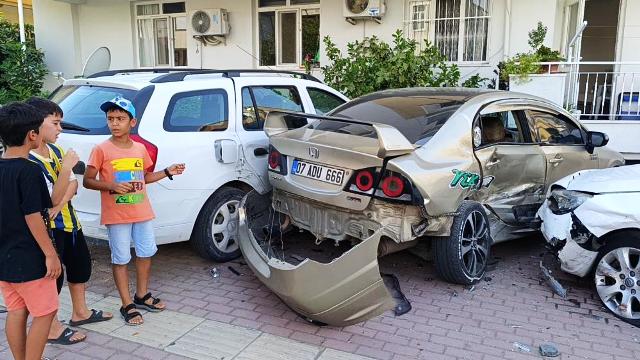 Antalya'da 14 yaşındaki çocuğun kullandığı otomobil seyir halindeki bir başka araca çarptıktan sonra kaldırımda park halinde bulunan 2 otomobili de hurdaya çevirerek durabildi. Kazada bir kişi yaralanırken, kaza yapan 14 yaşındaki otomobil sürücüsünün araç sahibi olan annesine 12 bin 977 TL ceza uygulandı.