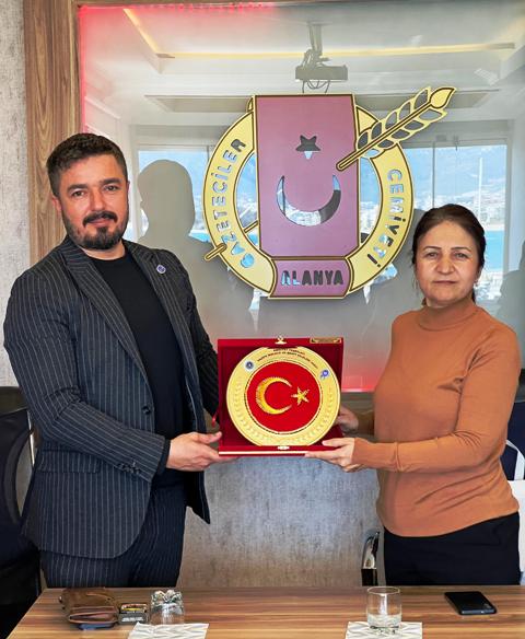Alanya Gazeteciler Cemiyeti’ni (AGC) ziyaret eden Emniyet Teşkilatı Vazife Malulü ve Şehit Aileleri Vakfı (EMŞAV) Alanya Şube Başkanı Hakan Çoban ve yönetimi Başkan Coşkun ve yönetimini tebrik etti. EMŞAV Başkanı Çoban, vakfın Alanya’daki çalışmaları hakkında da bilgi verirken Ramazan ayıdan sonra daha görünür çalışmalar yapacaklarını kaydetti. Başkan Çoban, ziyaretin anısına Türk bayrağı motifli plaket takdim ederek başarı dileklerini de iletti. AGC yönetiminin bir diğer ziyaretçisi ise Alanya Eğitim ve Araştırma Hastanesi Başhekimi Doç. Dr. Yılmaz Güler oldu. Güler AGC’nin yönetimine tebrik ziyaretinde bulundu. Başhekim Güler, Başkan Coşkun ve yönetim kurulu ile güncel konulara yönelik sohbet edip başarı dileğinde bulundu. – Haber Merkezi