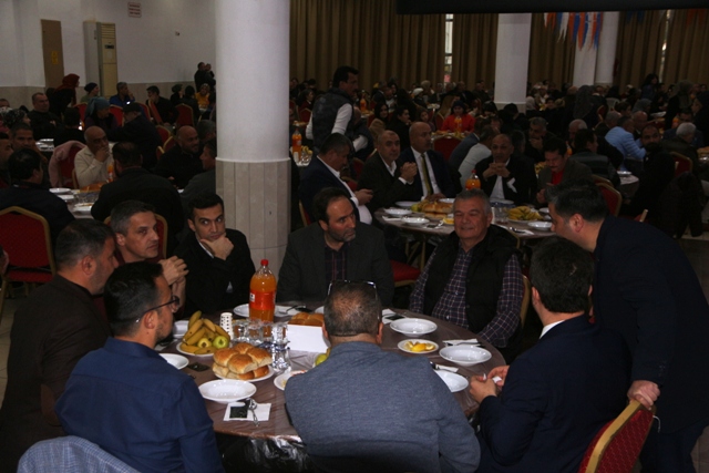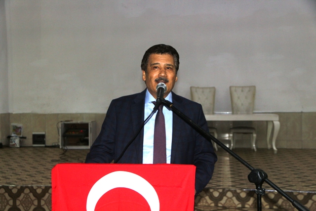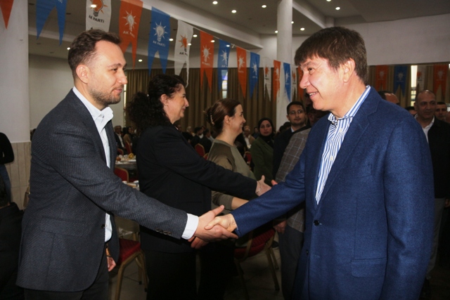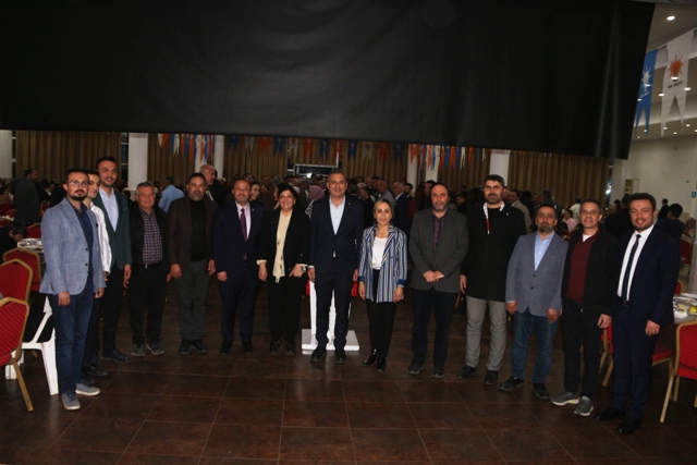 AK Parti MKYK Üyesi Menderes Türel de, “Böylesine güzel ve anlamlı bir gönül sofrasında bir araya geldiğiniz için hepinize teşekkür ediyorum. Ramazan ayı hepimiz için manevi yönü yüksek bir ay. Başı rahmet, ortası mağfiret, sonu cehennem azabından kurtuluş olan bu ayda bizler aynı zamanda vücudumuzu aç, susuz bırakmanın ötesinde ruhsal açlığımızı da gideriyor, günahlarımızdan arınarak yaşamayı bir alışkanlık haline getirmeyi önemsiyoruz. Bu ay aynı zamanda bir paylaşma ayı. Hayır ayı ve işte bu paylaşma ayının en güzel görüntüsünü de bugün burada bu gönül sofrasında sizlerle birlikte olarak görmüş bulunuyoruz. Dünyanın birçok köşesinde başta Filistin’de olmak üzere İslam Alemi’nin çocuklarının, bebeklerinin katledildiği bir ortamda bizim en büyük temennimiz böylesine bir ayda bütün zalimlerin bir nebze de olsa insanlıktan nasibini alması, dünyaya barış ortamının gelmesidir. Ramazan ayı manevi bir yolculuktur. İnsanlığın da en güzel dersi kendi adına çıkartarak birlik, beraberlik,barış ve kardeşlik içinde yaşamasını temenni ediyor, hepinize saygılar sunuyorum. Allah cümleten tuttuğunuz oruçları kabul etsin” dedi. Türel’in konuşmasının ardından okunan ezan ile birlikte katılımcılar oruçlarını açtı. İftar programının sonunda dua edilmesinin ardından protokol üyeleri günün anısına fotoğraf çektirmeyi ihmal etmedi. – Erkan Uysal