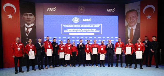 ‘5 Aralık Dünya Gönüllüler Günü’nde düzenlenen AFAD Gönüllüleri Sertifika Teslim Töreni’nde Antalya’nın akreditasyona sahip tek arama kurtarma ekibi olan AKUT Alanya, İçişleri Bakanı Ali Yerlikaya’dan sertifikasını aldı.