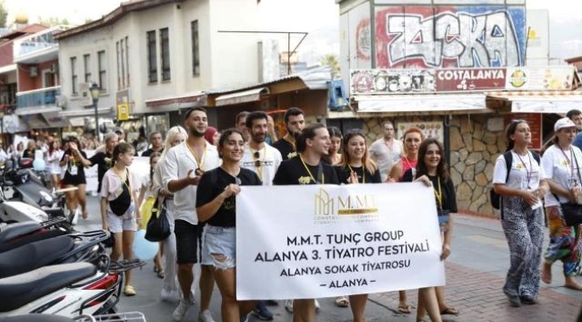 Bu yıl 3.'sü düzenlenen M.M.T Tunç Group Alanya 3. Tiyatro Festivali, kent protokolü, ünlü sinema ve dizi oyuncuları, tiyatro toplulukları ve çok sayıda davetlinin katılımıyla gerçekleştirilen kortej yürüyüşü ile başladı.