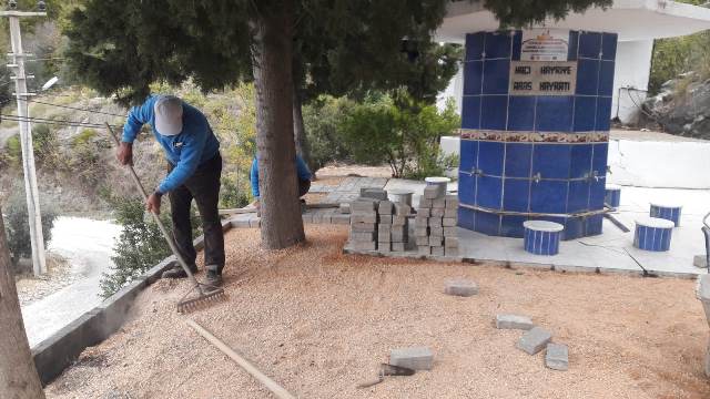 Antalya Büyükşehir Belediyesi, Alanya’daki mezarlık ve okulların yanı sıra camilere de çevre düzenlemesi çalışması yapıyor.
