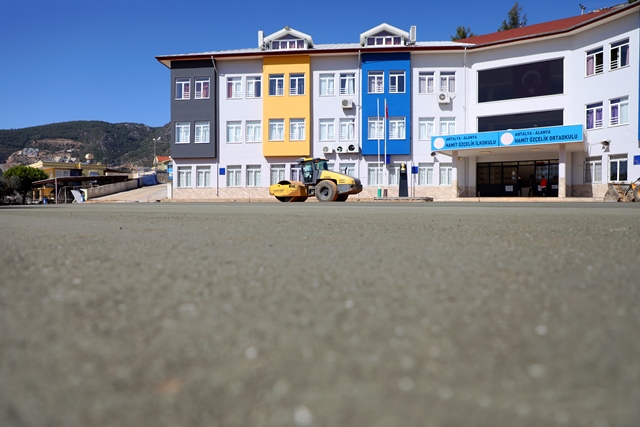 ALANYA BELEDİYESİ 107. OKULUN ÇEVRE DÜZENLEMESİNİ YAPTI SIKIŞTIRILMIŞ BETON TEKNİĞİ İLK KEZ UYGULANDI