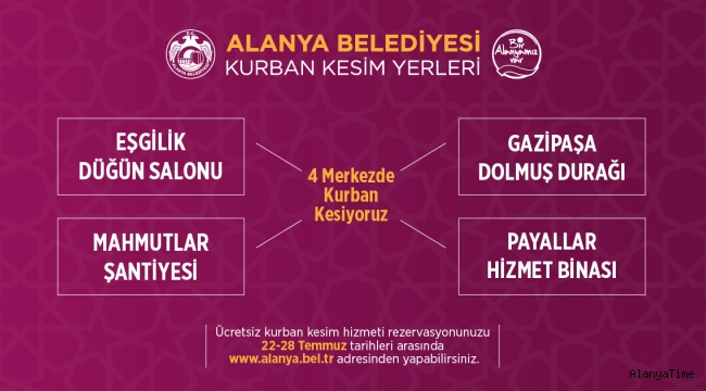 ALANYA BELEDİYESİ KURBAN BAYRAMINDA 4 NOKTADA KESİM HİZMETİ VERECEK