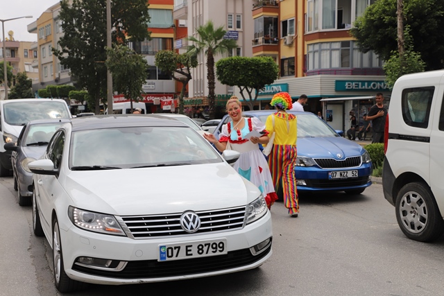 Alanya Belediyesi Temizlik İşleri Müdürlüğü çevre kirliliğini azaltmak için başlattığı çalışmaları eğlenceli bir hale dönüştürdü. Araç sürücülerinin duyarlılığını arttırmak için başlatılan projede eğlenceli kostümlerle sürücülere uyarıda bulunarak, Alanya Belediyesi’nin hediyeleri dağıtılıyor.