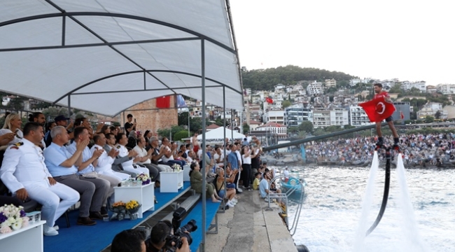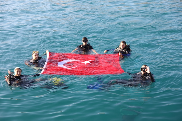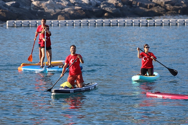 Kutlamalar kapsamında Alanya’yı dünyada temsil eden Furkan Yılmaz flyboard gösterisi gerçekleştirdi. Akrobatik hareketler ile izleyicilere unutulmaz bir gösteri sunan Yılmaz, açtığı Türk Bayrağı’nı da protokol üyelerine takdim etti. Son yılların moda spor olan Sub Board geçiş korteji de büyük ilgi görürken, dalgıçlar tarafından deniz altında açılan Türk Bayrağı da büyük alkış topladı. Engelli birey Yağmur Gök, dalgıç kontrolünde yüzerek protokol üyelerini ve vatandaşları selamladı. Program vatandaşların ücretsiz tekne turuna katılımıyla devam etti.