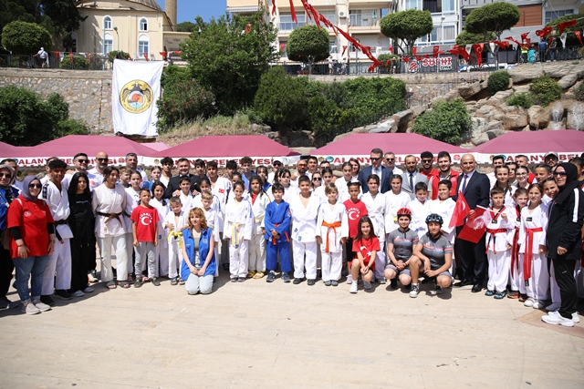 19 Mayıs Atatürk’ü Anma Gençlik ve Spor Bayramı programları Atatürk Anıtı önünde yapılan çelenk sunma töreni ile başladı. Programa Alanya Kaymakamı Fatih Ürkmezer, Alanya Belediye Başkanı Adem Murat Yücel, Alanya İlçe Gençlik ve Spor Müdürü Emre Kıldırgıcı, siyasi parti başkanları, oda ve STK temsilcileri katıldı. Törenin ardından protokol üyeleri ve gençler hep birlikte İskele Şelale önüne “Gençlik Yürüyüşü” düzenlendi. Bayraklarla büyük bir coşkuyla yapılan yürüyüşün ardından program İskele Caddesi’nde saygı duruşu ve İstiklal Marşı ile başladı. Şiirlerle devam eden etkinlik gençlerin halk oyunları, judo ve karate gösterileri ile devam etti. Oldukça renkli görüntülere sahne olan gösteriler ayakta alkışlandı. Daha sonra Kaymakam Fatih Ürkmezer ve Belediye Başkanı Adem Murat Yücel, çadırlara kurulan sporcu gençleri ziyaret edip ve başarılar dilediler. Başkan Yücel, Türk tarihinde önemli bir yeri bulunan Okçuluk ile ilgili kurulan stantta gençlerle bir araya gelerek ok attı. İskele Şelale Önündeki programın ardından ise gençler için tekne turu düzenlendi. Yüzlerce genç denize açılarak unutulmaz bir gün yaşadılar.