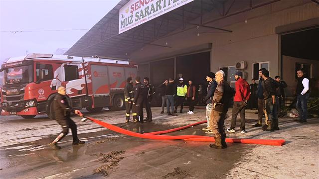 Alanya’da mobilya ve beyaz eşya deposunda çıkan yangın önce yanındaki fidanlığa ardından da muz sarartma tesisiyle muz serasına sıçradı. Yangında 3 iş yeri ve 1 muz serası zarar gördü.