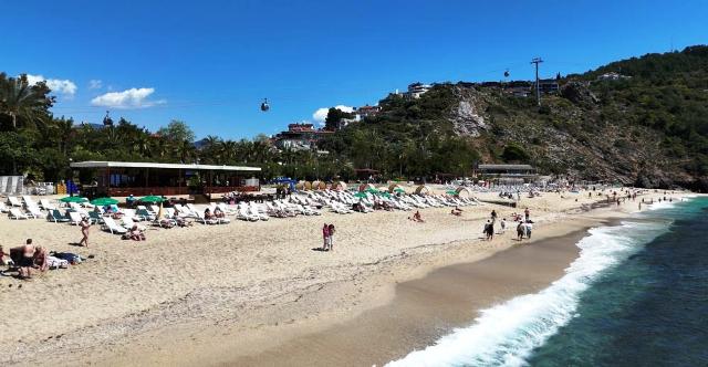 Alanya’da güneşli havayı fırsat bilen yerli ve yabancı turistler plajları doldurdu.