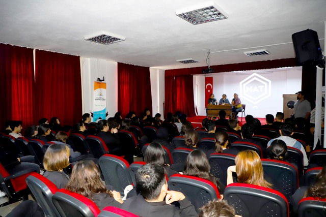 ‘Alanya Uluslararası Taş Heykel Sempozyumu’nda görev alan sanatçılar Doç. Yıldız Güner, Ezgi Bahadır ve Belediye Ressamı Emine Nur Sargullar, Cikcilli Mehmet Arif Türktaş Anadolu Lisesi öğrencileriyle söyleşide bir araya gelerek sanat konuştu.