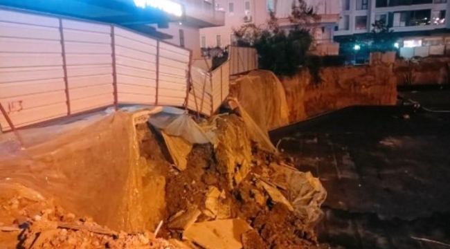 Alanya’da bir inşaatın koruma duvarı toprak kayması nedeniyle yıkıldı.