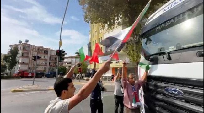 Alanya'da İsrail'e destek verdiği iddia edilen şirketin TIR'ı protesto edildi