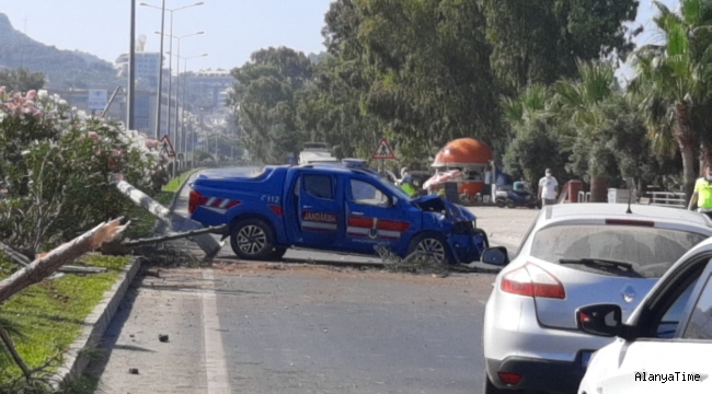 Alanya'nın Kargıcak Mahallesi'nde sürücüsünün direksiyon hakimiyetini kaybetmesi sonucu kontrolden çıkan jandarma aracı takla attı. Kaza da araçta bulunan iki asker yaralandı.