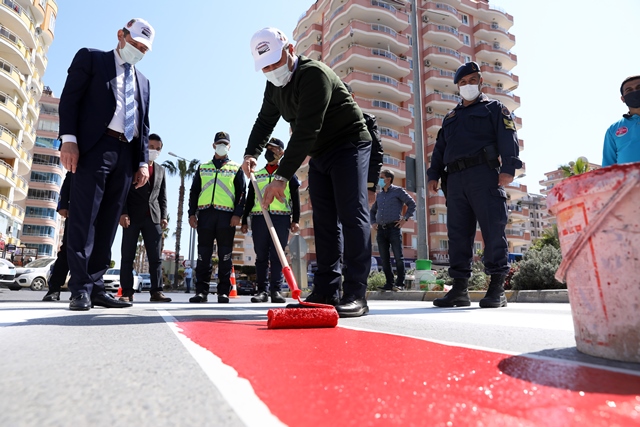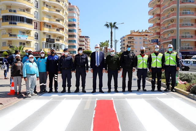 İçişleri Bakanlığı tarafından yayaların trafikteki güvenliğinin sağlanması ve yaya geçitlerinde farkındalık oluşturulması amacıyla başlatılan "Kırmızı Çizgi" uygulaması başladı. Bu kapsamda Alanya genelinde birçok noktada da yaya geçitlerine kırmızı çizgi çekilmeye başlandı. Kırmızı Çizgi uygulamasına Alanya Kaymakamı Dr. Fatih Ürkmezer, Alanya Belediye Başkanı Adem Murat Yücel, Alanya İlçe Emniyet Müdürü Alper Avcı, Alanya İlçe Jandarma Komutanı Yarbay Engin Burak Mindivanlı ve Alanya Belediyesi Trafik Eğitim Parkı’nda eğitim alan minik polisler katıldı.