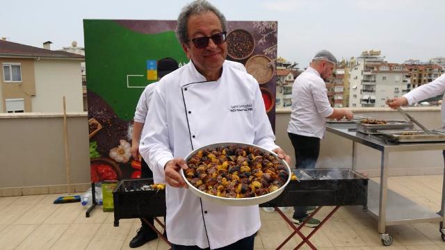 Alanya Üniversitesi'nde muşmula (yeni dünya) kebabının Alanya'da tanıtılması için Gastronomi ve Mutfak Sanatları Bölümü Öğretim Üyesi ve Mühendislik ve Doğa Bilimleri Fakültesi Dekanı Prof. Dr. Mehmet Durdu Öner mangalın başına geçti.