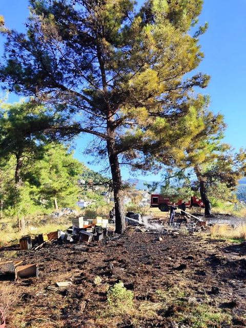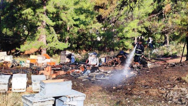Alanya’da mezarlıkta çıkan yangında orman içerisinde bulunan arı kovanları zarar gördü.