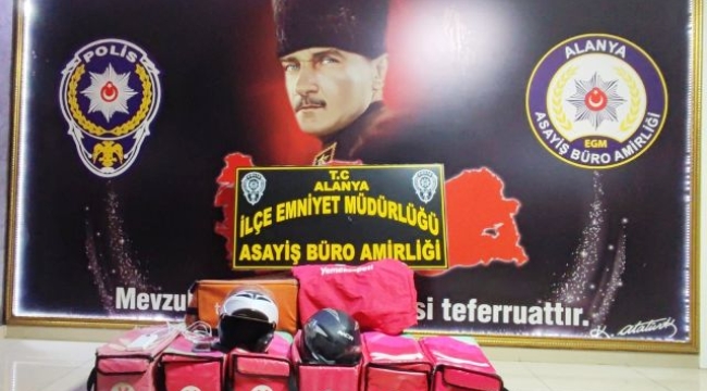 Alanya'da motokuryelerin ekipmanlarını çalan 2 şahıs tutuklandı