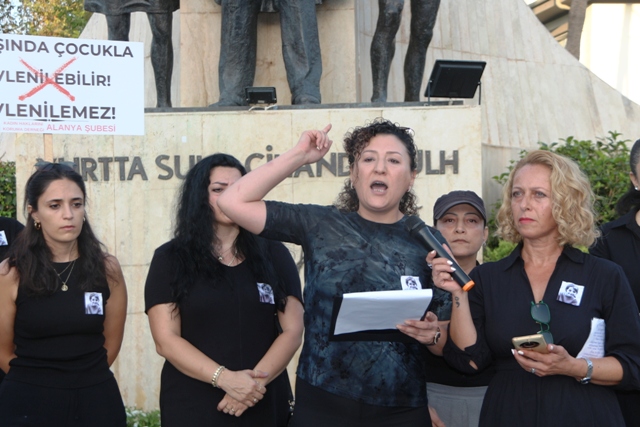 Diyarbakır’da öldürülen 8 yaşındaki Narin için toplananlar adına konuşan KHKD Alanya Şube Başkanı Melek Depren, “Bıçak kemiği kesti. Sabrımız tükendi. Yaşam savaşımız cehaletle, umudumuz ise adalet, adalet, adalet” dedi.