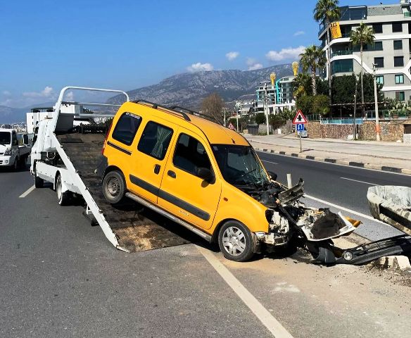 Alanya'da refüje çarpan otomobilin sürücüsü yaralandı
