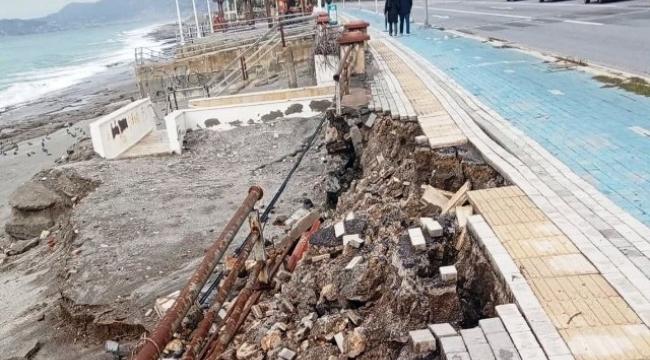 Alanya’da etkili olan yağışların ardından sahil kenarında bulunan kaldırım çöktü.