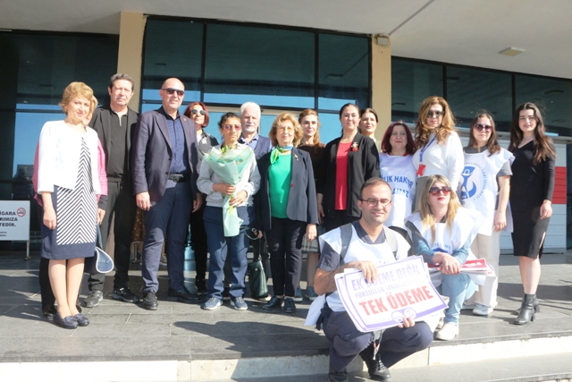 Alanya’da ‘14 Mart Tıp Bayramı’nda sağlık çalışanları iş bıraktı. Alanya Eğitim ve Araştırma Hastanesi (EAH) servisler girişinde SES Alanya Temsilciliği, Genç Sağlık Sen Alanya Temsilciliği ve Hürriyet Sen Alanya Temsilciliği’nin birlikte düzenlediği greve CHP Alanya İlçe Başkanı Bülent Kandemir, CHP Alanya İlçe Kadın Kolları Başkanı Ümran Aykut ile partililer de destek verdi. Bir dakikalık saygı duruşunda bulunulmasının ardından greve giden sağlık çalışanları adına konuşan SES Alanya Temsilciliği Üyesi, Pataloji Uzmanı Bahar Bakır Çetin, “Sağlık hizmetinin metalaştırılarak alınıp satılan bir mala dönüştürülmesine, hastaya müşteri denilmesine ve sağlık bütçesinin özel sermayeye akıtılmasına, sağlık kurumlarının şirketleşmesine, halkın sağlığının paraya tahvil edilmesine, Performans -güvencesizlik- şiddet kıskacı ile faturanın sağlık emekçilerine kesilmesine, Tıp Bayramı’nın 106. Yıl dönümünde de 14 Mart Haftası’nda mücadeleye devam ediyoruz. 14 Mart’lar bayrama dönüşsün diye Sağlık Mücadele Haftası diyoruz. Bizler de bugün çoşkulu kutlamalar yapmak isterdik. Bu özel günü eylemler ile karşılamak istemezdik. Fakat sorunlarımız gün geçtikçe katmerleşiyor. Bu sistem hizmeti üreten biz sağlık emekçilerinden ve hizmeti alan parçası olduğumuz halkın yararına değil. Bu nedenle; 14 Mart’ta hizmet üretmeyerek bir kez daha iş yerleri önlerinden, alanlardan, meydanlardan SES’leniyoruz. Bugünü bayram olarak kutlayabilmemiz için çok sayıda sorunumuz içinden aşağıda yazılı acil taleplerimizin karşılanmasını bekliyoruz. Taleplerimiz sağlık emekçilerine ek ödeme, teşvik vb. adlarla yapılan, ekip anlayışını bozan, rekabet oluşturan ve çalışma barışını bozan ödeme yöntemi yerine yoksulluk sınırının üzerinde, tek kalemde, tamamı emekliliğe yansıyacak şekilde temel ücret ödenmesine başlanmalıdır. Temel ücret üzerine yapılan işin niteliği ve riski, eğitim durumu, kıdem yılı gibi kriterler ile giydirilmiş ücret belirlenmelidir. Hak edişlerin tavan ücret kat sayılarına takılmaması için, tavan ücret katsayıları yükseltilmelidir. Sağlık emekçileri uygulanan döner sermaye uygulamaları nedeniyle kamuda çalışan emsallerine göre daha erken vergi dilimine girmektedir. Yoksulluk sınırı üzerinde emekliliğe yansıyan temel ücret rejimine gidilinceye kadar emekliliğe yansımayan döner sermaye, teşvik vb. isimler adı altında ödenen tüm ücretler vergi dilimi dışında bırakılmalıdır. Vergi dilimleri yüzde 10’da sabitlenmelidir.