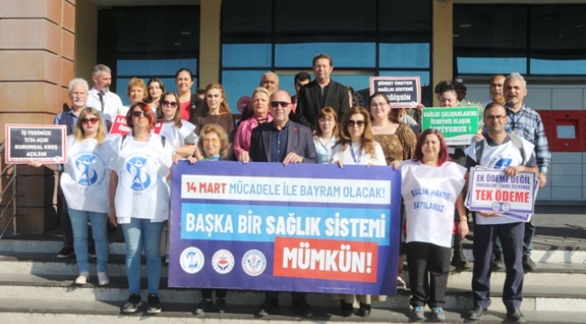 Kamu sağlık kurumları daha demokratik bir yapıya kavuşturulmalıdır. Kamu sağlık kurumlarında idareci belirlenmesi kriterlere uyanlar arasında o kurumlarda çalışan emekçilerin oyu ile gerçekleşsin. Bu talepler sağlık emekçileri kadar halkın sağlık hakkına yönelik taleplerdir. Sağlık hakkımız için mücadeleyi, sağlık emekçilerinin ekonomik, özlük ve demokratik hakları için mücadeleyi yükseltmeye devam edeceğiz. Çünkü biz biliyoruz ki başka bir sağlık sistemi mümkün” dedi. - Erkan Uysal