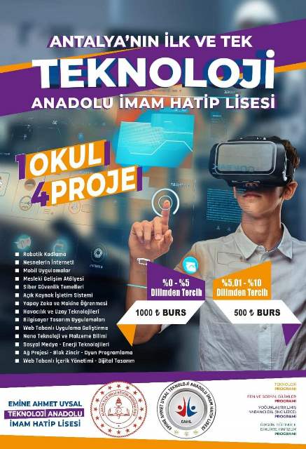 Emine Ahmet Uysal Teknoloji Anadolu İmam Hatip Lisesi 4 proje bölümü ile 2024-25 eğitim öğretim yılında eğitim vermeye başlayacak.