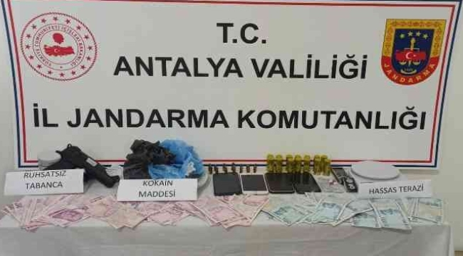 Antalya İl Jandarma Komutanlığı KOM Şube Müdürlüğü ve Alanya İlçe Jandarma Komutanlığı ekipleri, Alanya'da üç adrese eş zamanlı uyuşturucu operasyonu düzenledi. Operasyonda gözaltına alınan 7 şüphelinin ev, araç ve iş yerlerinde yapılan aramalarda 400 gram kokain, 2 adet hassas terazi, 1 adet ruhsatsız tabanca, 20 adet tabanca fişeği, 2 adet delil niteliği taşıyan not defteri, suçtan elde edildiği değerlendirilen 200 euro, 565 ABD doları, 32 bin 635 TL ile 6 adet cep telefonu ele geçirildi. Şüphelilerin işlemlerinin devam ettiği bildirildi.