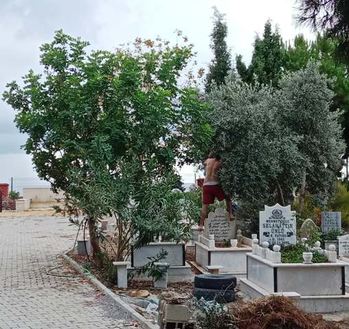 Alanya’nın Kargıcak Sahil Mezarlığı’nda ismi öğrenilemeyen bir kişi, mezarlıkta bulunan zeytin ağacından zeytin toplamak için yarı çıplak olarak mezarın üzerine çıktı. Bu saygısızlık, bölgedeki duyarlı bir vatandaşın müdahalesine neden oldu. “Mezar bizim” diyerek uyarıda bulunan kişi sayesinde zeytin toplayan şahıs mezardan indi. Ancak olay burada bitmedi!