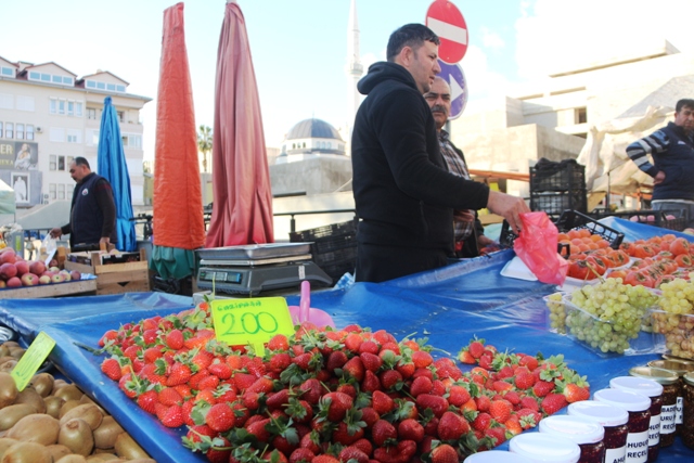 Alanya'da yeni yılın ilk Cuma Pazarı’nda tezgahlardaki en pahalı ürünler 200 TL’den satılan çilek ile sarımsak oldu.