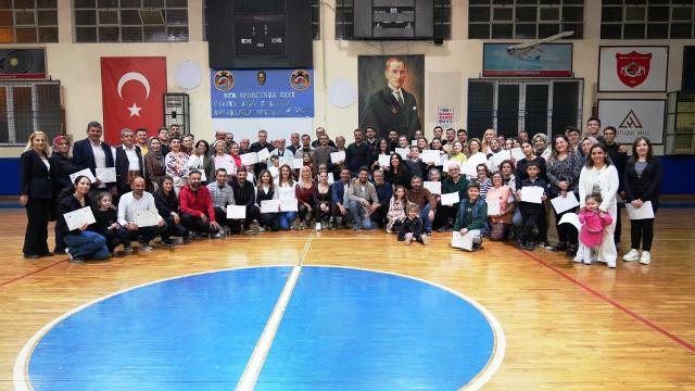Alanya Belediyesi ve Alanya Kültür Sanat ve Turizm Vakfı (ALSAV) iş birliğiyle organize edilen Alanya ve Ege yöresi zeybek kurslarının ikinci dönemi, 75. Yıl Spor Salonu'nda düzenlenen sertifika töreniyle tamamlandı.