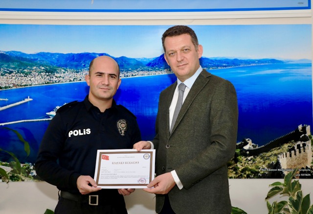 Alanya Kaymakamı Fatih Ürkmezer, ilçenin huzur ve güvenliği için çalışan İlçe Emniyet Müdürlüğü’ndeki komiser, komiser yardımcısı ve polis memurlarını başarı belgesi ile ödüllendirdi.