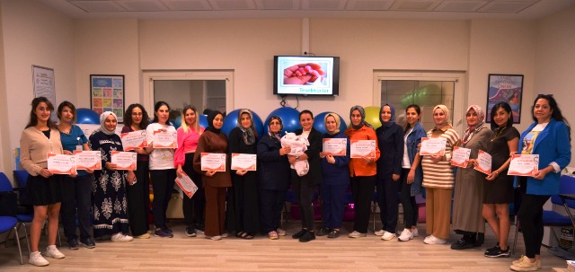 ‘Daha bilinçli kadınlar, daha bilinçli bir toplum’ anlayışını kendine ilke edinen Alanya Eğitim ve Araştırma Hastanesi (EAH) çatısı altında hizmet veren Gebe Okulunda, 4 hafta boyunca eğitime katılan 15 anne adayına mezuniyet töreni düzenlenerek katılım belgesi verildi. Gebe okuluna katılan anne adaylarına gebelikte sağlık, beslenme, normal doğum, doğum ağrısı ile baş etme yöntemleri, lohusalık, yeni doğanın bakımı, anne sütü, emzirme teknikleri, aile planlaması, gebe pilates ve yoga eğitimleri hakkında bilgiler verildi.