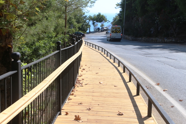 Alanya Kalesi’ni ziyaret eden turistlerin güvenli ve rahat dolaşımı için yeni yürüyüş yolları yapılıyor.