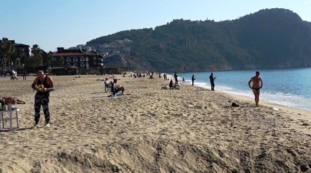Alanya’da güneşli havayı fırsat bilen yerli ve yabancı turistler Damlataş Plajı’nı doldurdu.