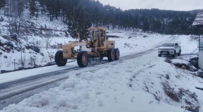 Alanya ve Gündoğmuş'ta karla kaplanan yolları açılıyor