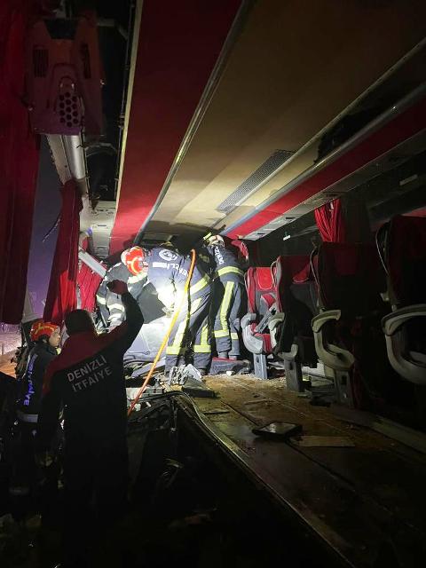Çarpmanın etkisiyle kontrolden çıkan otobüs metrelerce sonra güçlükle durabildi. Kazaya uykuda yakalanan yolcuların büyük korku yaşadığı kazada, büyük maddi hasar oluşan otobüsten kopan parçalar karayoluna saçıldı. Kazada otobüsün tek koltuklu olan sağ tarafında yolculuk eden Bulgaristan uyruklu Gulshen Kadirsancı olay yerinde hayatını kaybederken, 3’ü ağır olmak üzere 20 kişi de yaralandı. İtfaiye ekipleri tarafından kurtarılan yaralılar, olay yerinde yapılan ilk müdahalelerinin ardından Denizli ve Sarayköy’deki hastanelere sevk edildi. Kazada hayatını kaybeden yabancı uyruklu kadının cenazesi otopsi işlemleri için morga kaldırıldı. Kazayla ilgili soruşturma başlatıldı. – İHA
