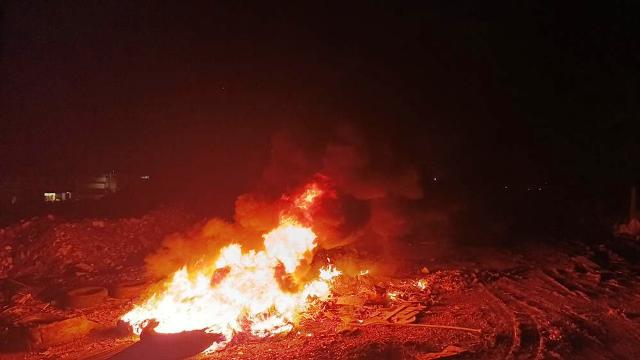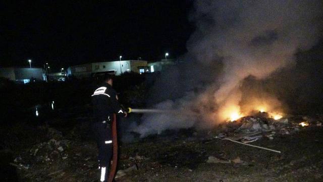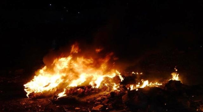 İtfaiye ekiplerinin söndürdüğü yangın bölgesinde, yakılmak üzere hazırlandığı anlaşılan başka hurda lastiklerin bulunduğu görüldü. – İHA