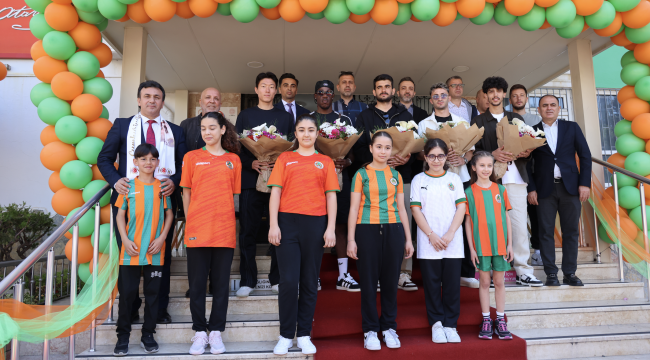 Alanyasporum Okulumda’ projesi kapsamında Kulüp Başkanı Hasan Çavuşoğlu, Asbaşkan Enver Vural, Başkan Yardımcısı Fahri Gürses, Yönetim Kurulu Üyesi Mehmet Ali Işık ve Genel Koordinatör Mevlüthan Çavuşoğlu ile futbolcular Fatih Aksoy, Gaius Makouta, Yusuf Özdemir, Ui-jo Hwang ve Enes Keskin Barbaros Azakoğlu Ortaokulu öğrencileriyle buluştu.