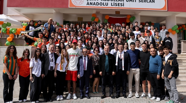 ‘Alanyasporum Okulumda’ projesi kapsamında Corendon Alanyaspor Kulübü Başkanı Hasan Çavuşoğlu, Kulüp Genel Koordinatörü Mevlüthan Çavuşoğlu, futbolcular Furkan Bayır, Richard Coelho ve Nuno Lima Şehit Abdullah Ümit Sercan Anadolu Lisesi öğrencileriyle buluştu.