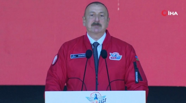 Türkiye'nin artan gücünün Azerbaycan'ı daha da güçlendirdiğini vurgulayan Aliyev,“ Birbirimizi güçlendirerek dünyanın önemli bir güç merkezi haline geldik. Türkiye'nin başarılı bir şekilde gelişmesi her şeyden önce Cumhurbaşkanı Erdoğan sayesindedir. Aramızdaki kardeşlik tüm Türkiye ve Azerbaycan halkına örnek olmalıdır. Bu bayramda bizlerle birlikte olan sevgili kardeşim Erdoğan'a ve Türkiye'den gelen dostlarımıza, kardeşlerimize teşekkür ediyorum. Türkiye ve Azerbaycan'ın ilerlemeye devam edeceğine olan güvenimi ifade etmek istiyorum. Yaşasın Türk-Azerbaycan birliği ve kardeşliği. Karabağ Azerbaycan'dır” ifadelerini kullandı.