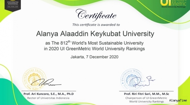 Tüm bu çalışmaların sonunda başta Alanya olmak üzere ülkenin ve genel olarak dünyanın kazançlı çıkacağı ortada olan “Çevre Dostu" bir üniversite hedefine öncelik veren ALKÜ, sıralamaya ortam ve altyapı, enerji ve iklim değişikliği, atık, su, ulaşım ve eğitim gibi konulardaki çalışmalarıyla girmeye hak kazandı.