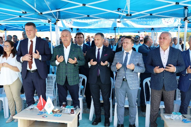 Konuşmaların ardından Alanya İlçe Müftüsü Dr. İhsan İlhan’ın duası ve kurban kesimiyle birlikte Milletvekili Çavuşoğlu ile Rektör Türkdoğan butona basarak temele ilk beton atma komutunu verdiler. Milletvekili Çavuşoğlu ve Rektör Türkdoğan temelin hayırlı olmasını dilediler. – ALKÜ / Bülten