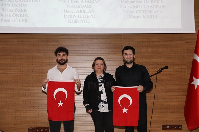 Dinleti sonunda programı koordine eden akademisyenlere ve öğrencilere Cumhuriyet’in 100. yılı olması sebebiyle solmayacak çiçek hükmünde birer Türk Bayrağı hediye edildi.