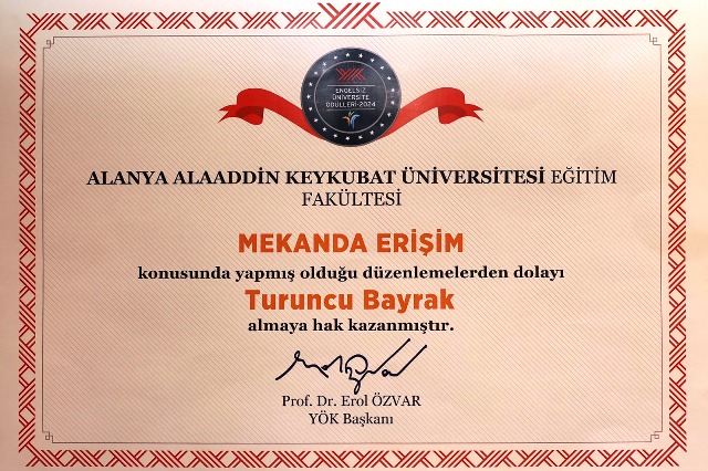 ALKÜ Eğitim Fakültesi engelli bireylerin eğitim ve kampüs yaşamına tam katılımını sağlamak adına yürüttüğü çalışmalarla ‘Turuncu Bayrak’ ödülüne layık görüldü.