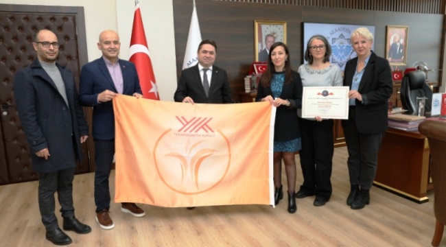 Alanya Alaaddin Keykubat Üniversitesi (ALKÜ), akademik başarılar ve bilimsel projelerinin yanında çevre ve insan yaşamına dair alanlarda da yaptığı çalışmalarla ödül almayı sürdürüyor. ALKÜ Eğitim Fakültesi, engelli bireylerin eğitim ve kampüs yaşamına tam katılımını sağlamak adına yürüttüğü çalışmalarla “Turuncu Bayrak” ödülü aldı. Eğitim Fakültesi Dekanı Prof. Dr. Mustafa Uslu beraberinde, Engelli Öğrenci Koordinatörü Dr. Öğr. Üyesi Seher Ülker, Hizmetlere Erişim Birim Koordinatörü Gülsiye Bıçak, Doç. Dr. Ayşe Yenilmez Türkoğlu ile ALKÜ Rektörü Prof. Dr. Kenan Ahmet Türkdoğan’a Turuncu Bayrak’ı ve belgeyi takdim ettiler.